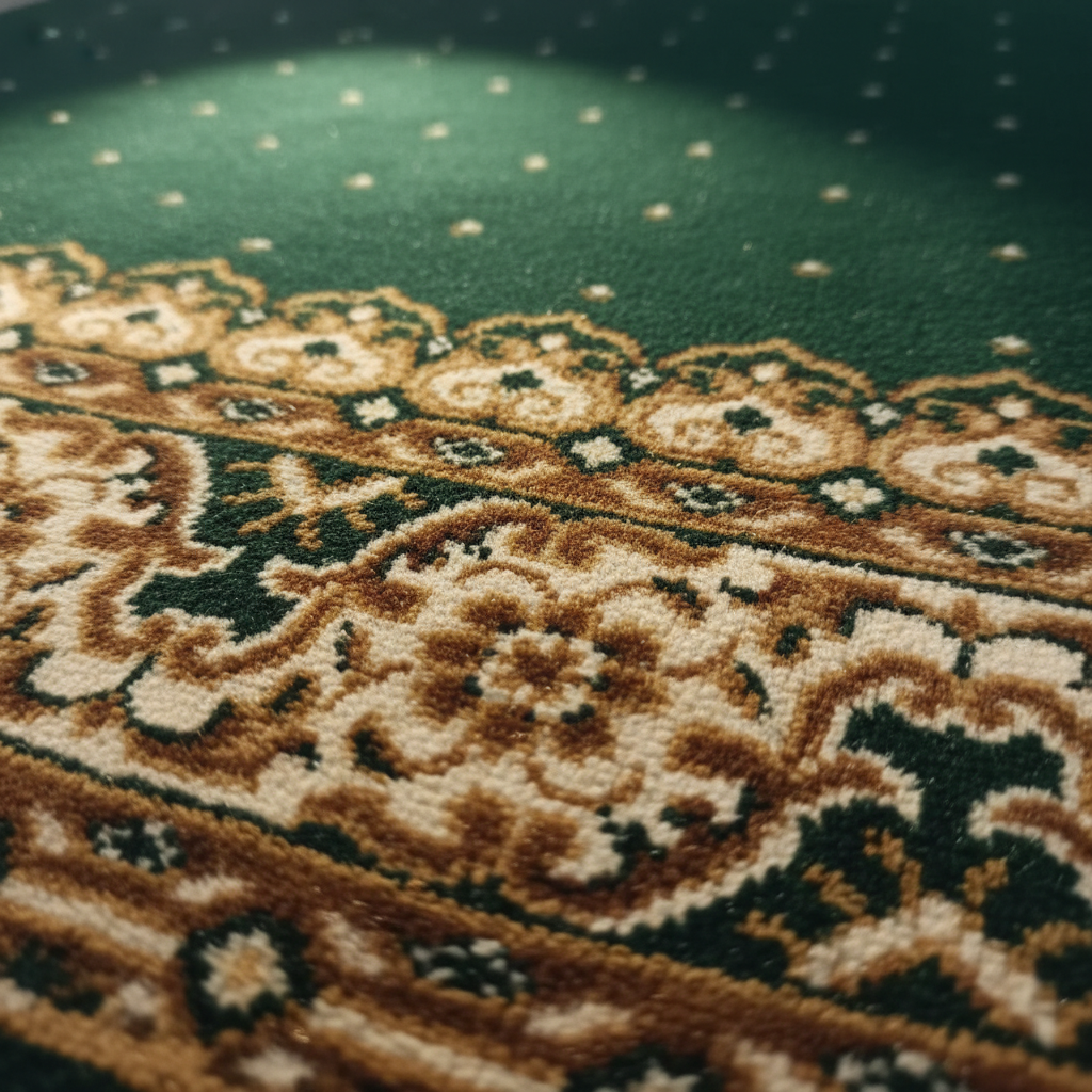 Sajaah dari Karpet Masjid LHMG merupakan karpet masjid produksi lokal yang dibuat menggunakan bahan Polypropylene berkualitas. Material ini dikenal memiliki karakter serat yang kuat, tidak mudah rusak, serta tetap nyaman digunakan dalam jangka waktu panjang.