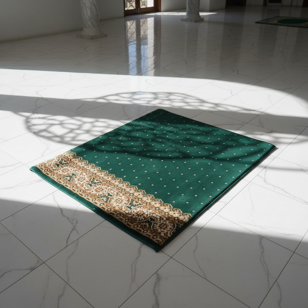 Sajaah dari Karpet Masjid LHMG merupakan karpet masjid produksi lokal yang dibuat menggunakan bahan Polypropylene berkualitas. Material ini dikenal memiliki karakter serat yang kuat, tidak mudah rusak, serta tetap nyaman digunakan dalam jangka waktu panjang.