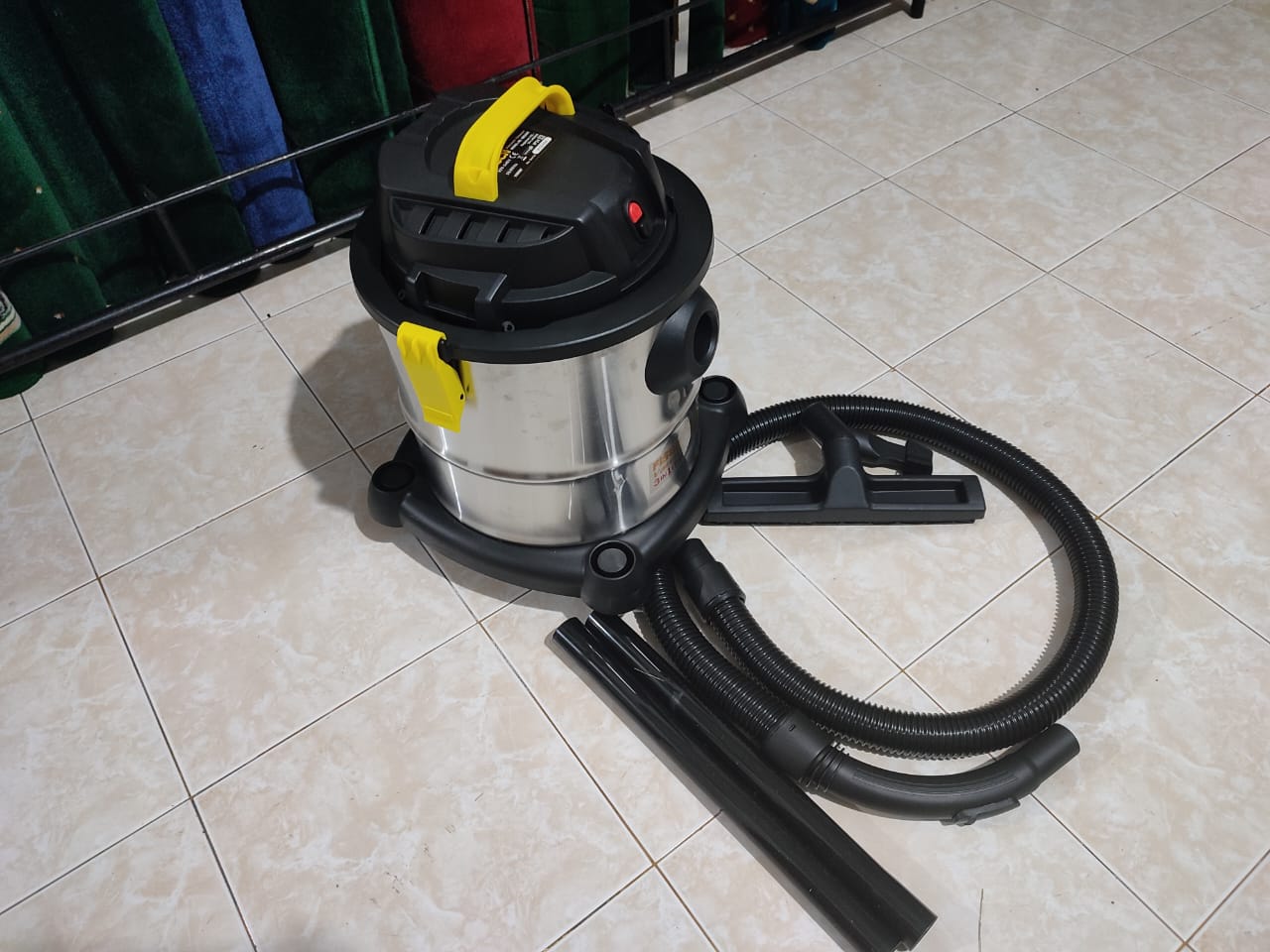 Vacum cleaner sedot debu sedotan kencang mantap, cocok sekali untuk karpet masjid, bisa sedot basah misal ketumpahan minuman, sedot kering seperti debu sampah2 kecil, selain itu bisa nyembur angin sebagai pengering tambahan. Kapasitas cukup besar 12 liter.